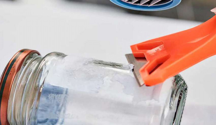 به این گونه که مقداری پنبه را به این مواد آغشته کنید و به آرامی روی سطح شیشه بکشید چرا که الکل و استون ماده موجود در چسب چوب را در خود حل می نماید و در آخر برای شفافیت شیشه از شیشه پاک کن جهت تمیز کردن آن استفاده کنید سرکه سیب هم حلال مناسبی برای پاک کردن چسب از روی شیشه می باشد.