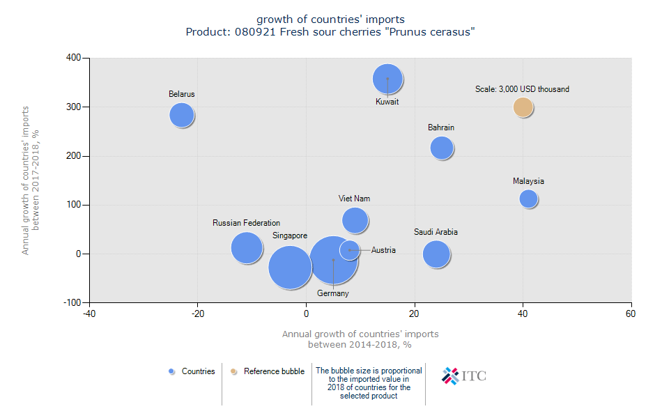 آلمان، سنگاپور، روسیه، کویت و عربستان به ترتیب بیشترین میزان واردات آلبالو را دارند.