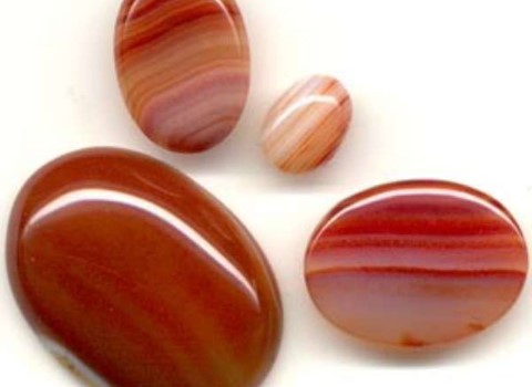 عقیق یمنی: سنگ عقیق یمنی با رنگ طلایی تا قرمز سرخ و الگوهای دست ساز خاص، در بین انواع سنگ عقیق معروف است و این سنگ معمولاً با تکنیک های سنتی نتراشیده می شود که در نتیجه، الگوها و شکل های فوق العاده زیبایی ایجاد می کند.