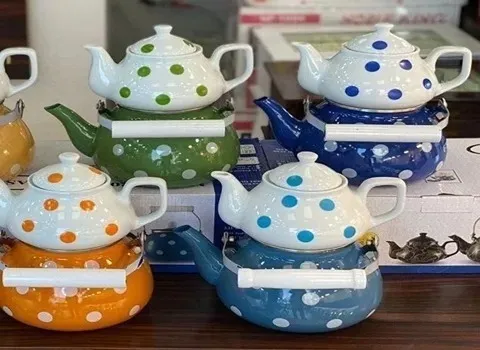 4. تنوع در انتخاب: این محصولات در انواع طرح ها و رنگ ها قابل دسترسی هستند، بنابراین شما می توانید به راحتی کتری و قوری خالدار مورد علاقه خود را انتخاب کنید.