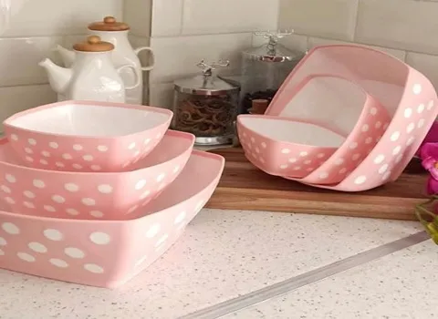 بیشترین ظروف به صورت چند عددی بفروش می رسد برای مثال، سه عدد کاسه در اندازه های کوچک و بزرگ در درون آن قرار دارد.