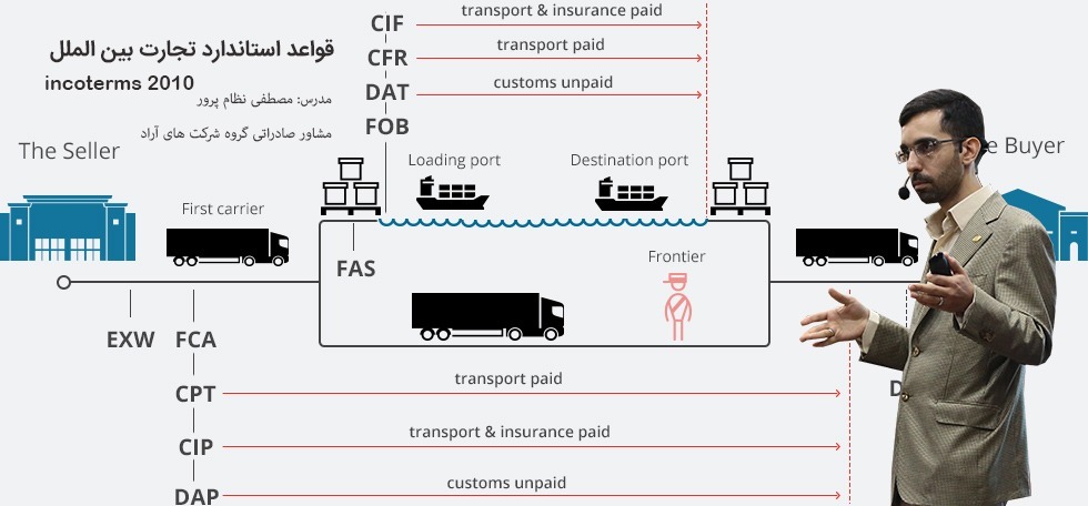 حمل کننده کشتیرانی است. شما باید بار را به کشتیرانی تحویل دهید. مشتری شما مشخص می کند که بار تحویل کدام کشتیرانی و در کدام بندر و اسکله داده شود. ساعت و روز آن را نیز تعیین می کند و شما بار را از کارخانه بارگیری کرده و تا بندر و همان پورتی که خریدار مشخص کرده است، حمل می کنید. کار های گمرکی آن را نیز به تمام می رسانید. در صورت تمایل خودتان می توانید کار ها را انجام دهید و یا با یک ترخیص کار صحبت کنید و کل صفر تا صد کار های گمرکی را به او بسپارید. در نهایت حداکثر ۲ الی ۳ میلیون تومان از شما دریافت می کند. ریسک و خطر کالا تا زمانی که روی عرشه کشتی قرار بگیرد با شماست و پس از آن بر عهده مشتری است.