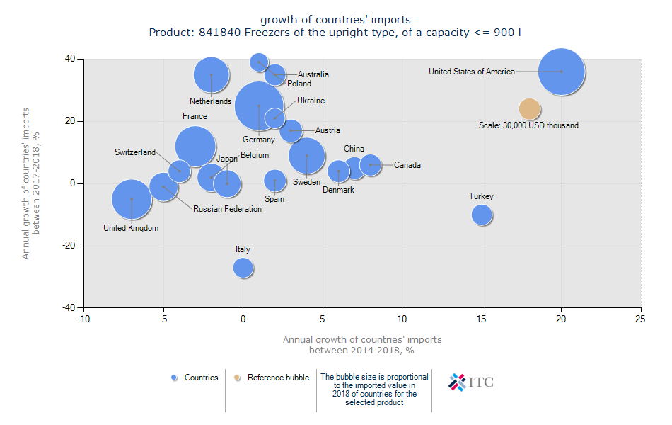 چنانچه زیر صفر و منفی باشد یعنی فرصت های تجاری این بازار در حال از بین رفتن است و آینده قابل پیش بینی ندارد و تمرکز اصلی را باید روی بازار کشورهای بالای نمودار گذاشت.
