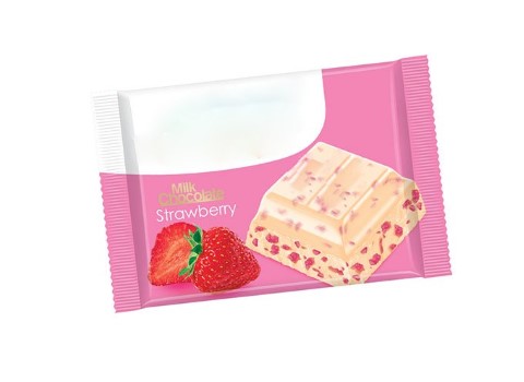 شکلات شیری با طعم توتفرنگی با یک رنگ شیری غنی و مات درونی و یک لایه رنگارنگ و درخشان توتفرنگی در بیرون ظاهری جذاب و مغرورانه دارد.