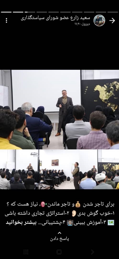 محمد قاسمی مشاور تجاری، ویدیویی از سخنان مهندس زیارکلائی را در استاتوس خود قرارداد.
