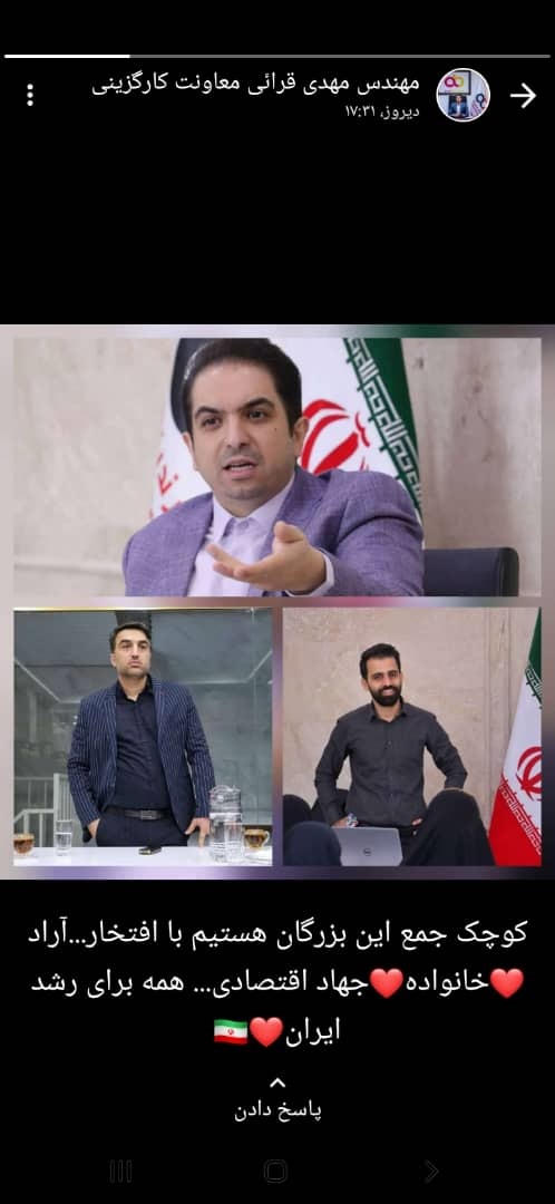 عرفان جوکار از نیروهای فعال پشتیبانی فنی مجموعه، ویدیویی از سخنان مهندس زیارکلائی را در استاتوس خود قرارداد.