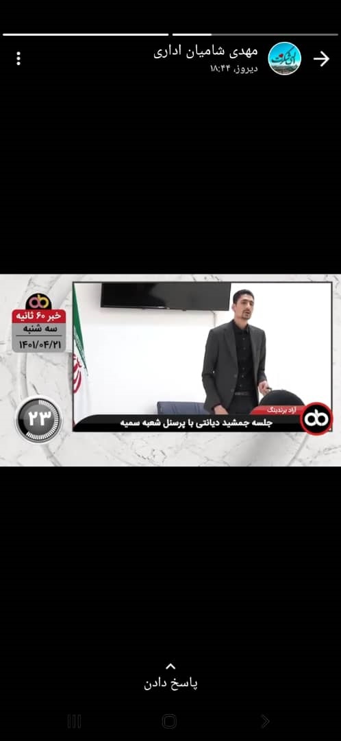 زهره اخلاقی از نیروهای واحد کارگزینی، اخبار ۶۰ ثانیه روز مجموعه را در استاتوس خود منتشر کرد.سید