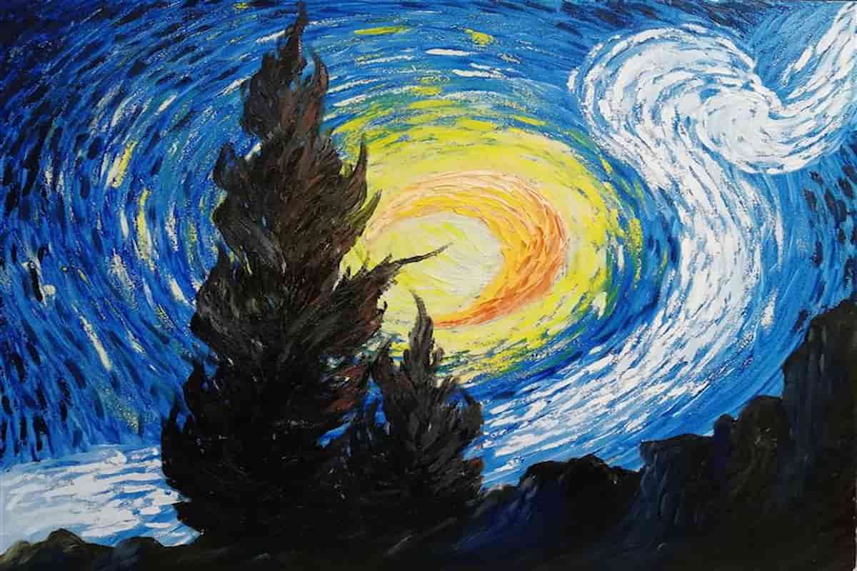 این هنرمند تابلوی شب پر ستاره را تقریبا یک سال قبل از آن که خودکشی کند در یکی از بیمارستانهای روانی کشیده است که یکی از معروف ترین آثار او شده است که بسیاری از افراد هم از آن الگو می گیرند که ونگوگ در رابطه با این اثر به برادرش اینگونه می گوید که صبح تا طلوع آفتاب از پنجره به مناظر بیرون نگاه می کردم و چیزی جز ستاره های صبحگاهی درشت نبود و آثار این هنرمند در حال حاضر در موزه ی نیویورک نگهداری می شود.