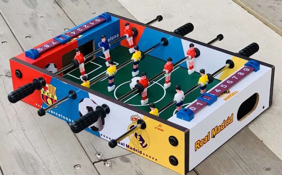 فوتبال دستی این نوع بازی از بازیهای است که بر روی میز مخصوص انجام می شود این میز دارای ابعاد ۱۲۰ در ۷۰ که دو طرف آن دروازه تعبیه شده و طول آن حدود ۱۹ تا ۲۱ سانتیمتر دارد ارتفاع آن نیز حدود شش و نیم تا ۸ سانتیمتر است در این میز میله هایی قرار گرفته که با آن آدمک وصل شده و با توپی از پلاستیک فشرده می توان بازی کرد.