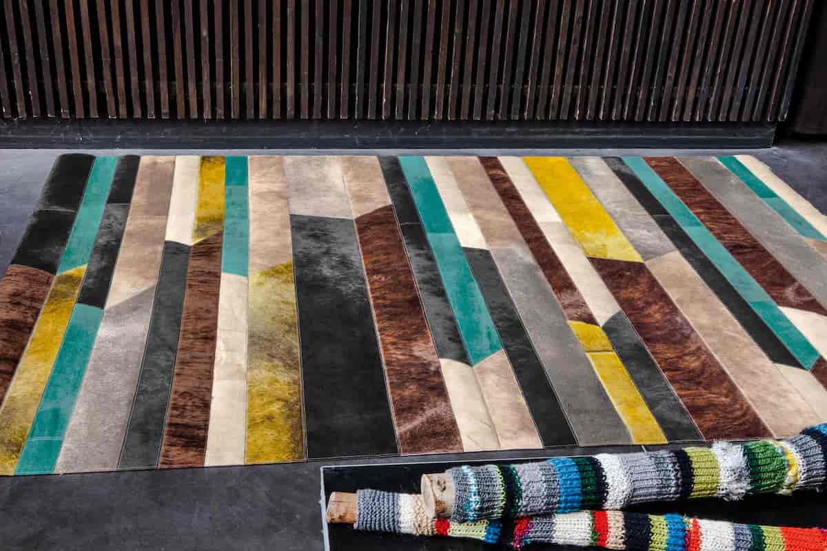 فرش های یک تکه پوست، فرش های طرح دار چرمی، تلفیقی از فرش ماشینی وچرم تلفیقی از فرش های دستباف و چرم که هر کدام در جای خود از زیبایی و تنوع برخوردار است.