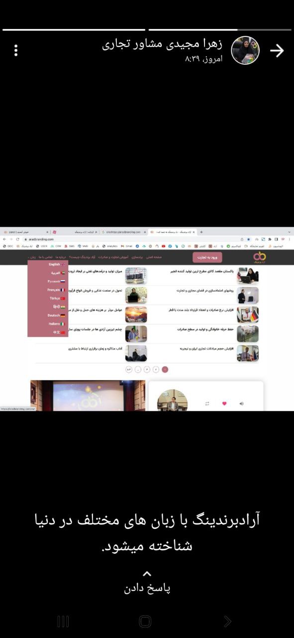 زهرا مجیدی از مشاوران تجاری، تصویری از سایت مجموعه با زبانهای مختلف را در وضعیت خود به نمایش گذاشت.
