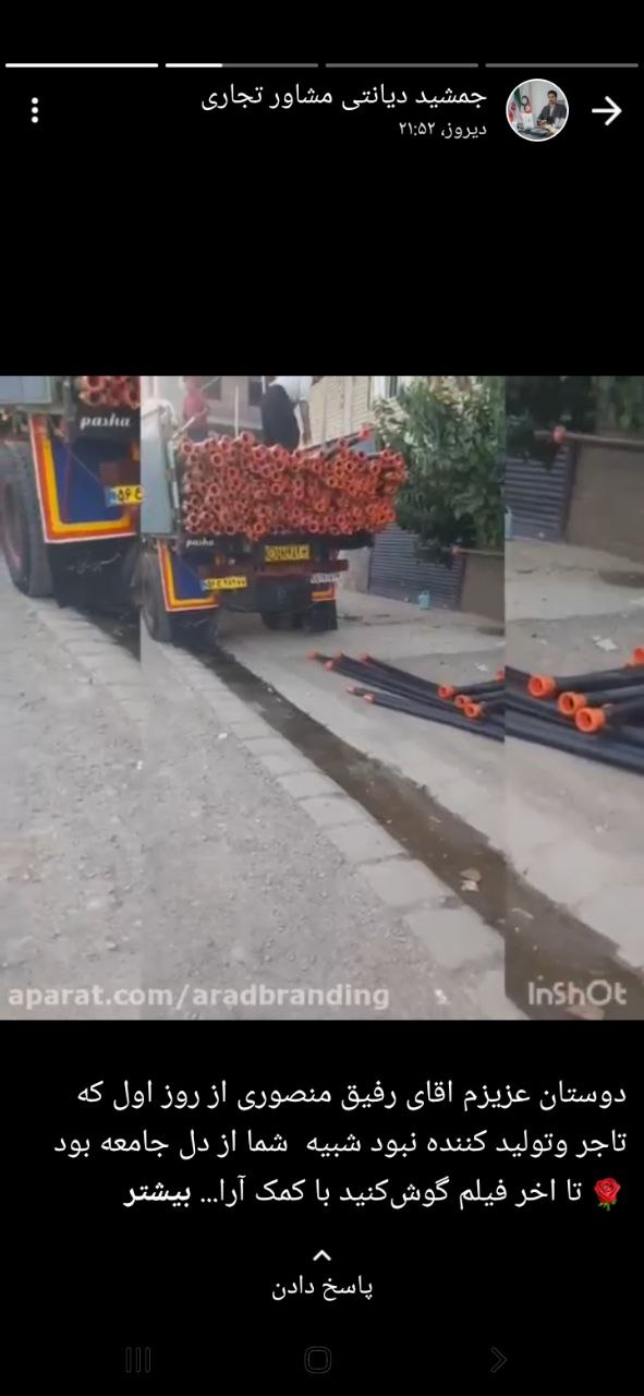 جمشید دیانتی از مشاوران تجاری، فاطمه رضائی مشاور تجاری، علی صابری، وحید بابکی و علی تقی زاده از نیروهای پشتیبانی تخصصی، کلیپی از ارسال بار تاجر موفق آرادی را در وضعیت خود به نمایش گذاشتند.