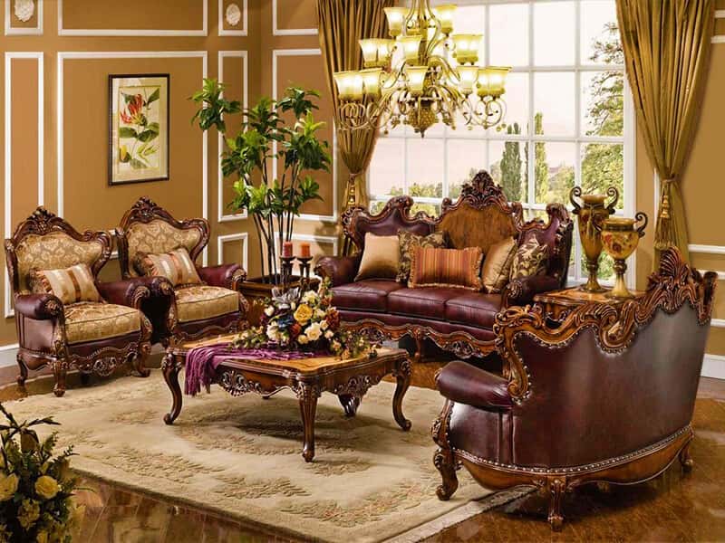 مبلهای کلاسیک زیبا با فریمهای چوبی طبیعی با کیفیت بالا مانند: بلوط و چوب گردو طراحی شده اند تا کیفیت عالی تری داشته باشد و مواد اصلی مورد استفاده چرم، پارچه یا مخمل است. مزیت چرم این است که براق، زیبا به نظر می رسد و تمیز کردن آن آسان می باشد اما در هنگام نشستن احساس سوزش به خصوص در روزهای گرم تابستان ایجاد می شود، اگر خانه شما مجهز به تهویه مطبوع باشد چرم تحت تأثیر قرار نمی گیرد چون بسیار بادوام است.