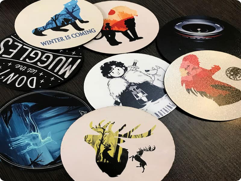زیر لیوانیها در انواع مختلفی مانند مربعی، دایره ای، مستطیلی و لوزی نیز موجود می باشد که بر روی آن تصاویری بسیار زیبا را درج نموده اند، این محصول بسیار ساده و قشنگ برای حفظ پاکیزگی و کلاس یک مجموعه به حساب می آید.