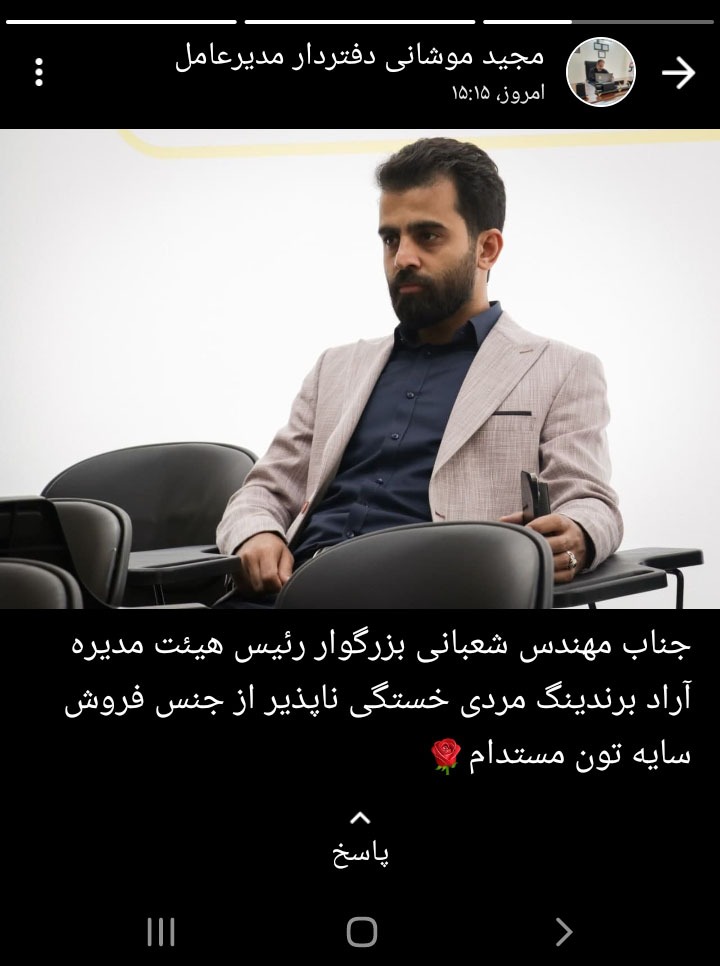 استاد علیرضا شعبانی رئیس هیئت مدیره با انتشار تصویری از ریاست قدرتمند مجموعه تجلیل نمود.