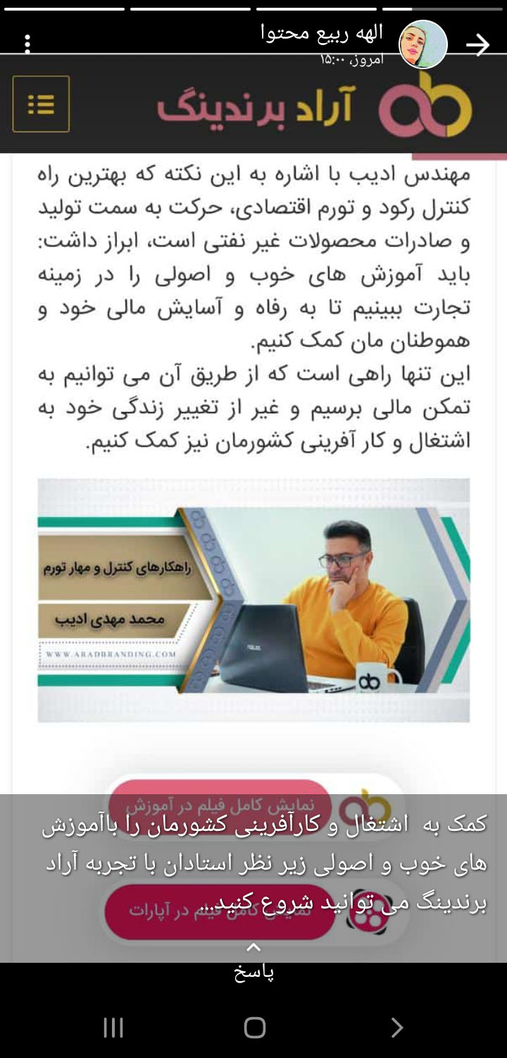 رضا حمید پسند از دیگر مشاوران تجاری، با انتشار متنی لزوم استفاده از آموزش های رایگان و آنلاین سایت مجموعه را برای مخاطبان خود خاطر نشان کرد.