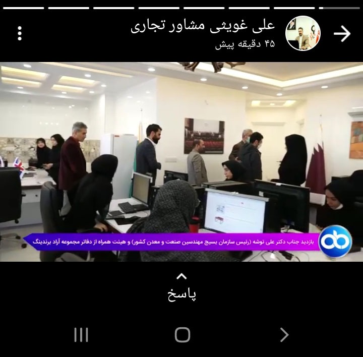 علی غویثی از دیگر مشاوران تجاری، با انتشار کلیپی حضور علی توشه رئیس سازمان بسیج مهندسی صنعت و معدن کشور در یکی از شعبات مجموعه را به تصویر کشید.