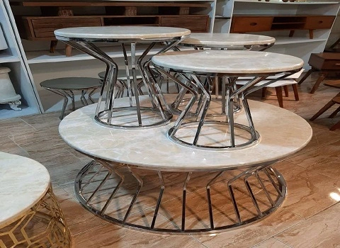 البته باید نوع مناسب آن برای هر محیطی به دقت انتخاب شود تا زیبایی را به ارمغان بیاورد. یکی از جدید ترین نمونه های این میز عسی نمونه های فلزی آن است که پایه های آن به صورت 3 تا حلقه می باشد که به هم وصل شده اند و بر روی آن یک صفحه شیشه ای دودی و یا ساده قرار می گیرد.