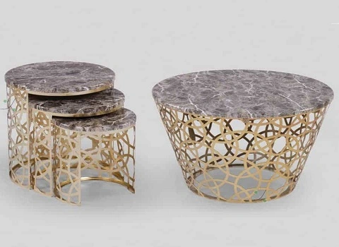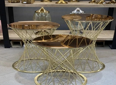 این میزها نمونه های چوبی فراوانی دارد که در طرحهای مختلفی تولید شده اند اما مدلهای فلزی آن از زیباییهای خاصی برخوردار می باشند و در اندازه و تعداد مختلفی تولید شده اند.