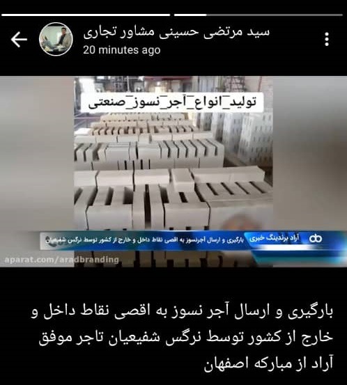 سید مرتضی حسینی مشاور تجاری، ارسال بار موفق آجر نسوز به نقاط مختلف کشور توسط خانم نرگس شفیعیان عزیز را، به رخ کشید.