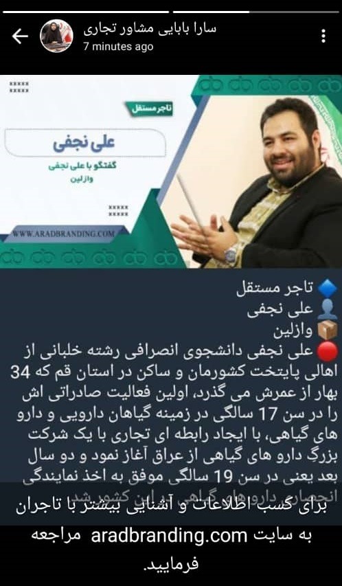 سارا بابایی مشاور تجاری، مختصری از صحبت های علی نجفی تاجر مستقل فعال در حوزه وازلین را به نمایش گذاشت.