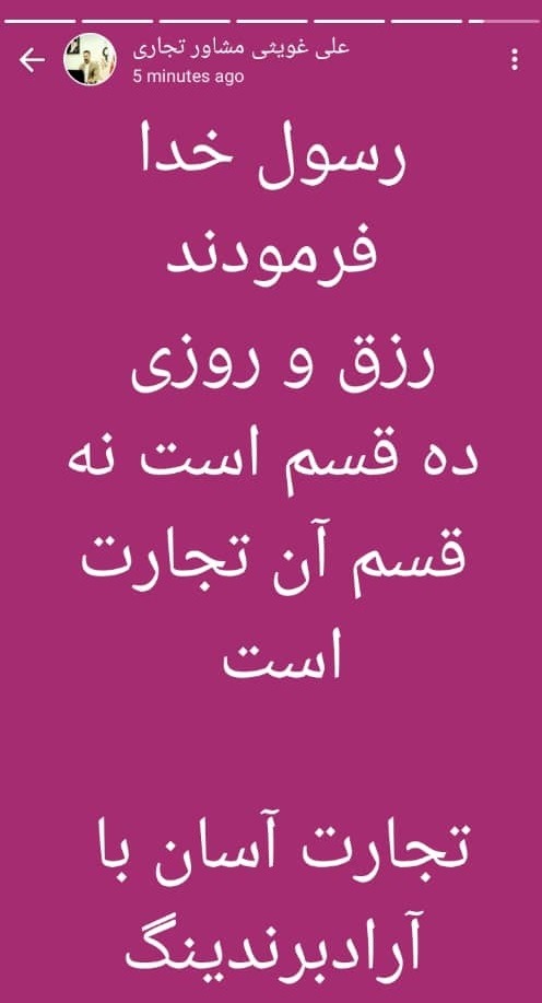 امیر عزیزپور از مشاوران تجاری مجموعه، مطلبی از صحبت های ارزشمند استاد زیارکلائی جهت استفاده علاقه مندان به تجارت را به نمایش گذاشت.
