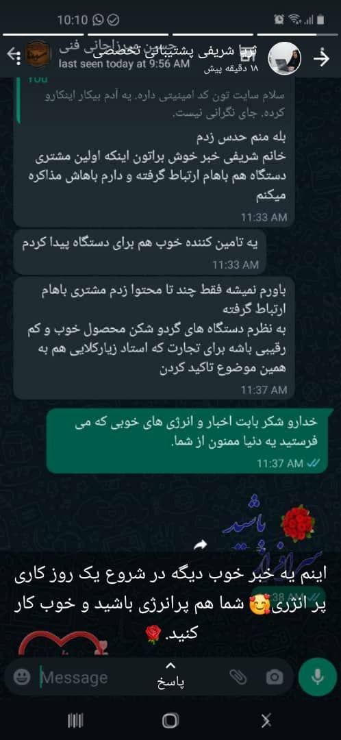 سلام وقت بخیر ممنون بابت محصولات خیلی خوبتون واقعا خسته نباشید ازتولیدات خیلی عالی وباکیفیت تون خسته نباشید
