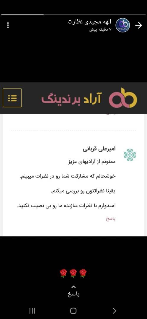 نظرات سازنده پرسنل آرادبرندینگ برای بهبود وضعیت مجموعه بسیار موثر و کاری است