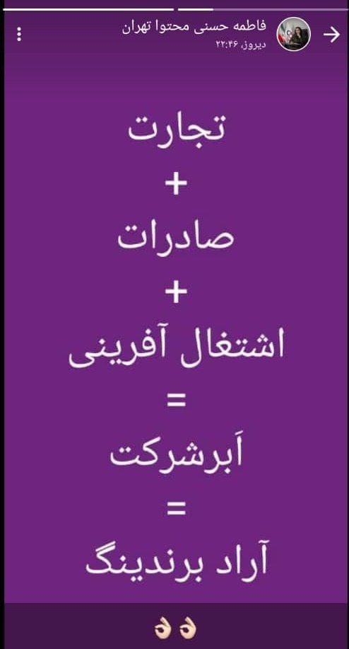 فاطمه حسنی از همکاران تولید محتوای تهران در وضعیت خود، تجارت، صادرات و اشتغال آفرینی این خانواده بزرگ را به تصویر کشید.
