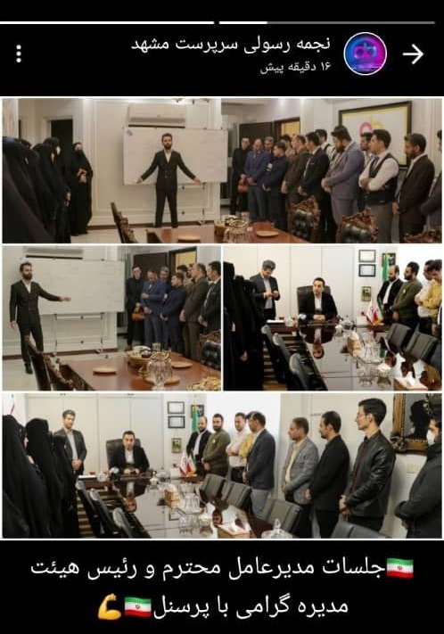 نجمه رسولی سرپرست تیم مشهد، وضعیتی در خصوص جلسات مدیر عامل و رئیس هیئت مدیره با پرسنل مجموعه را، منتشر کرد.