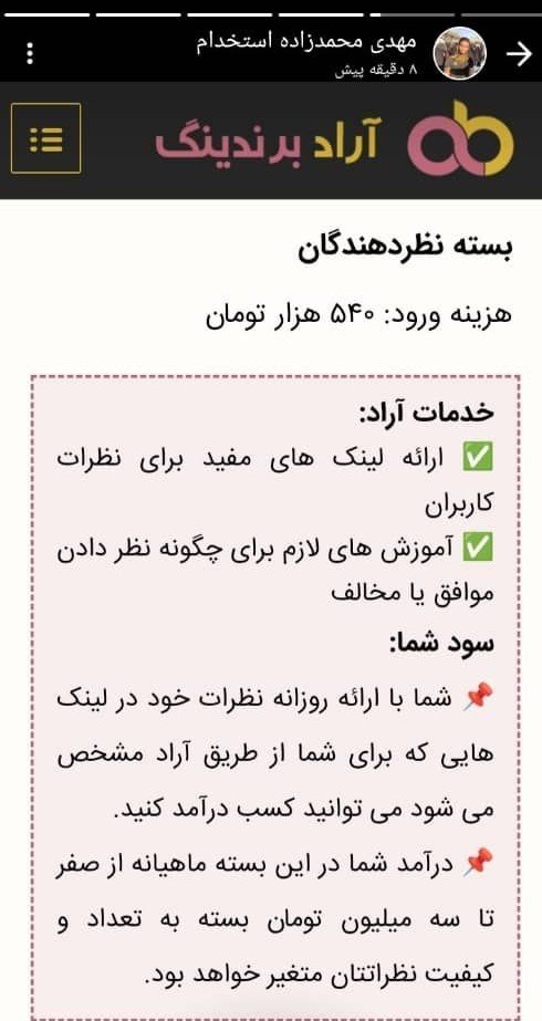مهدی محمد زاده از دیگر همکاران واحد استخدام، بسته کاربردی نظر دهندگان مجموعه را، به مخاطبان خود معرفی نمود.