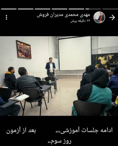 مهندس مهدی محمدی یکی از مدیران فروش، با انتشار تصویری از جلسات آموزشی خود با مشاوران تجاری، در سال جدید خبر داد.