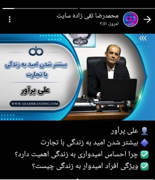 چقدر دوست داشتم یک کاری بلد بودم یک تخصصی یا هر چیزی که می توانستم با مجموعه آراد برندینگ همکاری کنم چون وقتی گزارش های فعالیت های مجموعه را میبینم افسوس و حسرت می خورم که کاش من هم ارادی بودم.