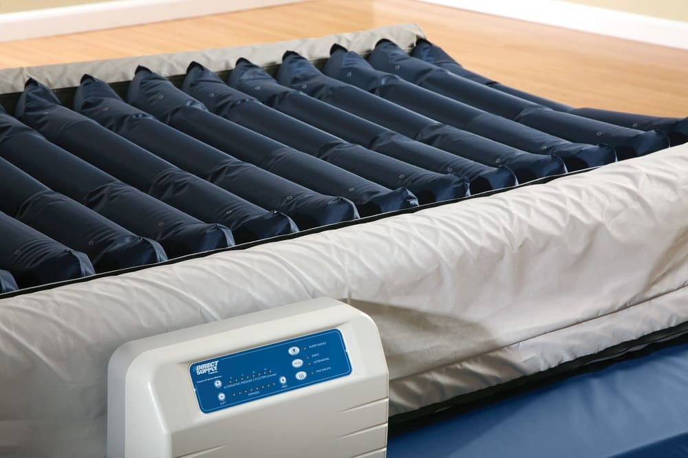 تشکهای بادی طبی، مانند این، به گونه ای طراحی شده اند که به تشک اجازه می دهد نقاط فشار متناوب را تغییر دهد، این امر از فشار طولانی مدت به همان ناحیه جلوگیری می کند و از تشکیل و رشد زخها و زخمهای فشاری جلوگیری می کند.
