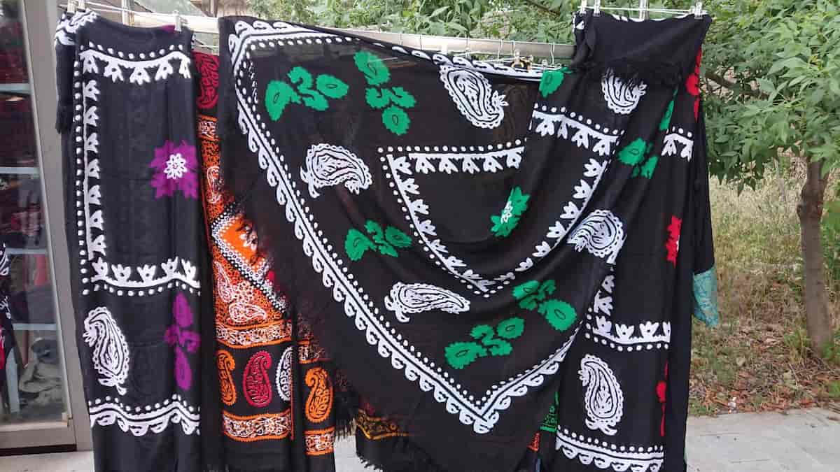 بافتهای آن گوناگون و بی نظیر می باشند که جذابیت بسیار خوبی را به ظاهر می دهد و از رنگهای شاد آن می توان بخوبی در مراسمات استفاده نمود که به بهترین حالت می توان از آن با دیگر لباسها ست نمود چرا که نقوش بکار رفته در آن مناسب ست کردن می باشد و افراد از این مزیت بخوبی استفاده می کنند.