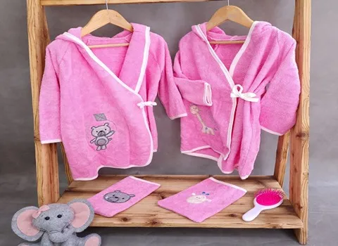 لازم به ذکر است از مشخصات منحصر به فرد حوله تن پوش دخترانه می توان به موارد ذیل اشاره نمود که عبارتنداز این نوع حوله ها دارای کلاه و نیز دو جیب در قسمت جلو می باشد.
