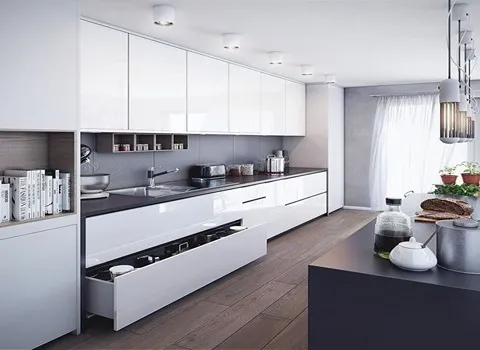 کابینت ها هایگلاس اکلیلی که دارای سطحی براق و بسیار زیبا می باشند، با توجه به کیفیت قابل قبولی که در تولید و همچنین استفاده از آنها دارا هستند، برای فضای آشپزخانه بسیار مورد توجه طراحان داخلی قرار گرفته است.