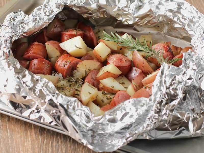 معمولاً برخی از مواد غذایی مانند گوشت قرمز را درون این فویلها می پیچند تا مواد غذایی هنگام پخت رطوبت خود را از دست ندهند علاوه بر اینها از فویل آلومینیومی برای محافظت از انواع سبزیجات در زمان گریل شدن نیز استفاده می شود.