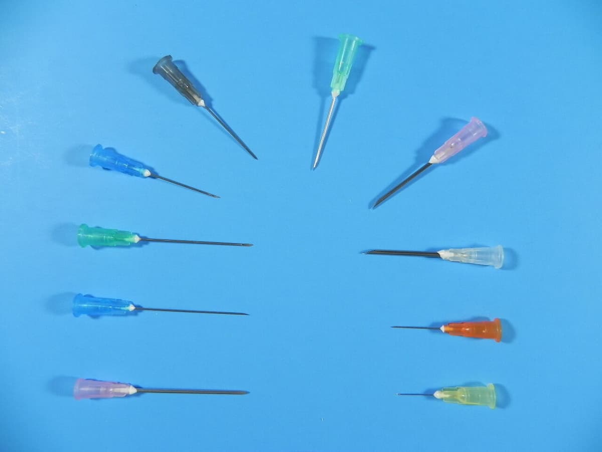 گیج قطر بیرونی اسمی سوزن است. در انگلستان گیج های استاندارد مورد استفاده 27 و 30 هستند. 27 سوزن گیج 0.4 میلی متر قطر دارند و 30 گیج قطر 0.3 میلی متر دارند. طول سوزن موثر که از انتهای توپی تا نقطه اندازه گیری می شود، از 6 میلی متر تا 35 میلی متر متغیر است.