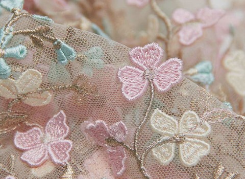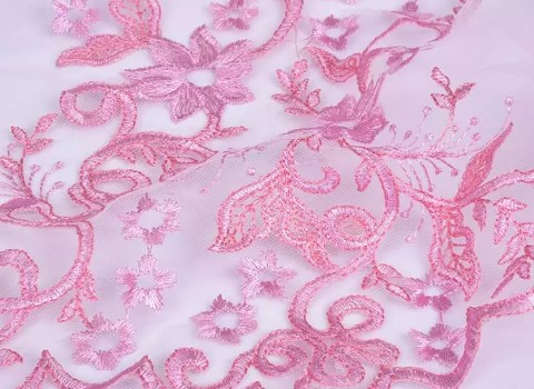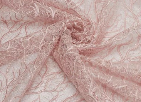 طرحی که روی این پارچه قرار دارد به صورت برودری شده است که این باعث می شود پارچه به حالت توری شکل به نظر برسد.