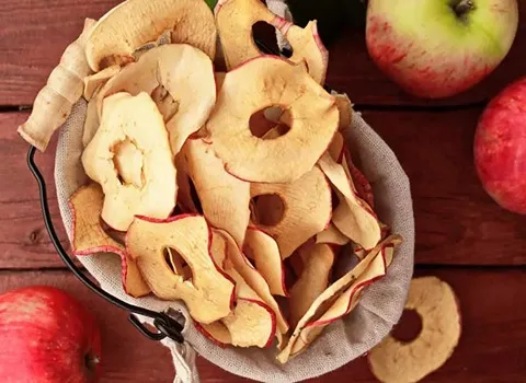 این میوه خشک فوق العاده خوش طعم و پر خاصیت از برش هایی از انواع سیب تهیه می شود میوه های خشک شده دارای مقادیر بالایی از انرژی هستند و می توان از آن ها به عنوان قند طبیعی به جای قندهای مصنوعی و مضر استفاده کرد.