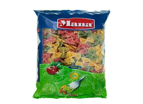 ماکارونی سبزیجات مانا، در واقع همان ماکارانی معمولی است که در مراحل تولید به آن مواد طعم دهنده اضافه می گردد با این وجود شکل و نوع این محصول با ماکارونی های معمولی تفاوت چندانی ندارد شرکت های مختلف تولید ماکارونی در کنار ارائه محصولات معمولی این نوع ماکارونی را نیز تولید می کنند که از نظر مزه می تواند بسیار لذیذتر باشد.