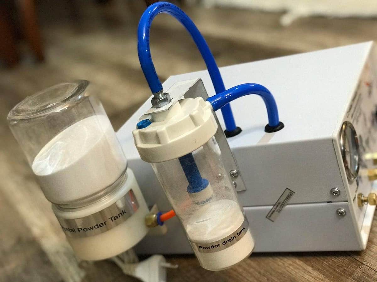 تا از سفت و متراکم شدن کریستالها و گرفتن لوله های دستگاه جلوگیری شود برای رفع گیر کردن لوله ها در برخی از دستگاه ها جای دو لوله مکنده یا فرستنده را تعویض می کنند و بعد از پایان کار آنها را مجددا سرجای خودشان قرار می دهند در برخی از دستگاه های میکرودرم ابریژن برای این که لوله ها تمیز شوند آنها را روی وضعیت پاک کن قرار می دهند.