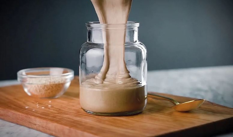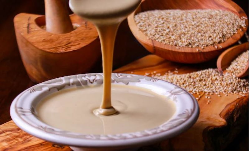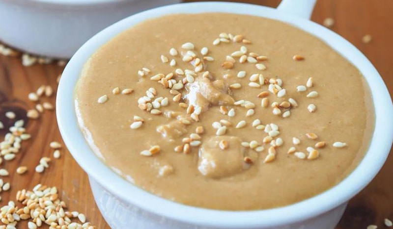 حال روغن مایع یا روغن کنجدی که دارید به کنجد آسیاب شده اضافه کنید سپس به وسیله یک قاشق موادی که ترکیب کرده اید را هم می زنیم تا به خوبی مخلوط شود و درنهایت همه مواد را یک بار دیگر داخل آسیاب بریزید و یک بار دیگر آسیاب کنید تا ماده شما حالت خمیری شکل بگیرد.