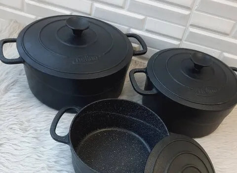 تحمل دمای بالا و پخش گرمای یکنواخت و عدم چسبندگی مواد غذایی.