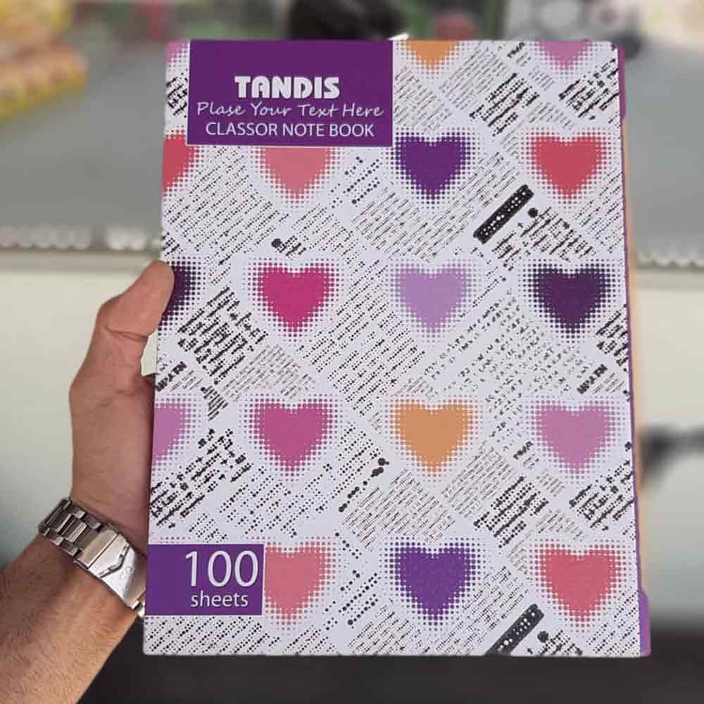 طرح جلد دفتر کلاسوری تندیس با توجه به سلیقه های مختلف و طرح های متنوع تولید شده است.