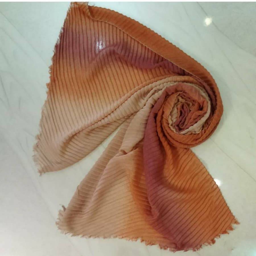 شال پلیسه سر رنگ از بهترین نوع پارچه استفاده شده که به روی سر به زیباترین حالت ممکن قرار می گیرد.