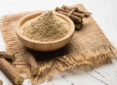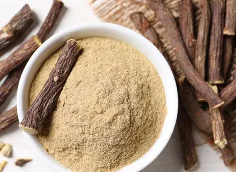 استفاده از شیرین بیان باعث میشود که استرس های طولانی مدت کاهش پیدا کرده ریشه شیرین بیان در درمان یائسگی زودرس موثر است، و در تسکین درد های دوران قاعدگی بسیار موثر می باشد، ویژگی این گیاه این است که در سم زدایی روده بزرگ کمک میکند.