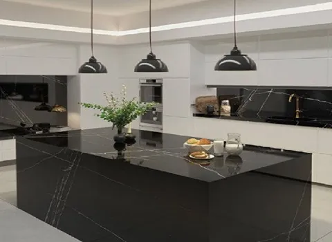 سرامیک بین کابینتی مشکی بافت صاف و بی درزی دارد که ظاهر شیک و یکپارچه ای را به فضای داخلی ارائه می دهد این نوع سرامیک مقاومت مناسبی در برابر حرارت دارد بنابراین مناسب برای استفاده در نزدیکی اجاق ها و فضاهای گرم می باشد.