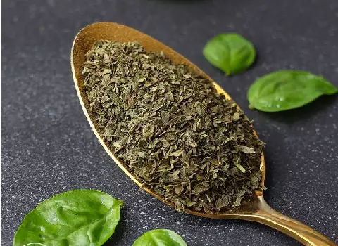 میزان استفاده مناسب: برای به حداکثر رساندن طعم، معطر کردن غذاها و جلوگیری از افزودنی زیاد، به میزان استفاده مناسب از پودر ریحان خشک توجه کنید.